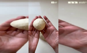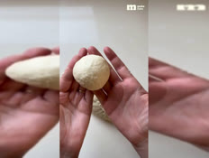 4 משמנים את כפות הידיים ואת משטח העבודה. מוציאים את הבצק למשטח העבודה ומחלקים אותו ל-8 חלקים שווים.