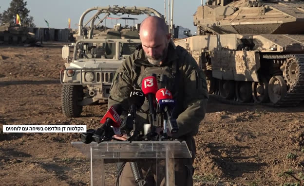 בלעדי לחדשות 12: ארבעה חודשים לפני שמפקד אוגדה 98, תא"ל דן גולדפוס, כינס מסיבת העיתונאים ונשא את הנאום שעורר סערה - אתמול (חמישי) בערב פרסמנו ב"מהדורה המרכזית" הקלטות שלו מספר ללוחמים על השיחה הנוקבת שהייתה לו עם ראש הממשלה בנימין נתניהו בתחילת המלחמה. "תפסתי לו את היד ואמרתי לו: 'ראש הממשלה, תסתכל לי בעיניים'. אנחנו רוצים לדעת שאנחנו חוזרים אחרי המלחמה הזו למקום אחר".