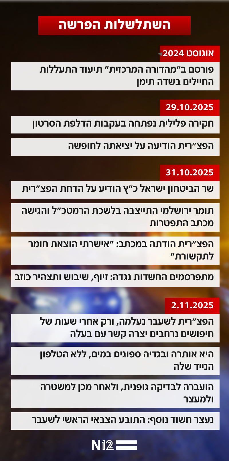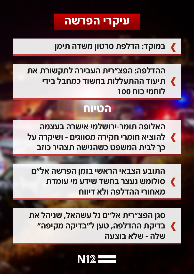 12:34: עו"ד: "אין שום סיבה להניח שהפצ"רית תשבש חקירה ובגלל זה לבקש את מעצרה. נחקרו כבר חמישה חשודים ובמסגרת החקירה נתפסו כבר טלפונים וקבוצות וואטסאפ, שבהן מופיעה גם הפצ"רית. כלומר יש להם כבר חומר חקירה. בנסיבות האלה קשה לראות איך אפשר לשבש".