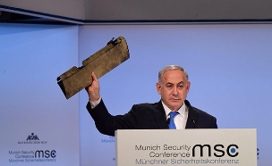 ראש הממשלה בנימין נתניהו התייחס היום (ראשון) למתיחות בגבול הצפון בעקבות חדירת המל"ט האירני לשטח ישראל, ואיים כי במידת הצורך ישראל תפעל נגד אירן עצמה ולא רק נגד שליחיה. בנאומו בכנס הביטחון במינכן הציג נתניהו בפני הקהל שריד של המל"ט שנתפס על ידי כוחות הביטחון, וקרא לשר החוץ האירני מוחמד זריף לחדול מהכחשותיו בנוגע למעורבות מדינתו בסוריה.