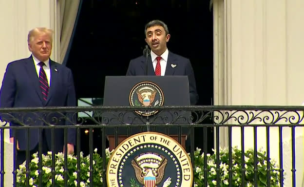 עוד לפני הטקס החגיגי, הנשיא טראמפ נפגש עם נציגי המשלחת של איחוד האמירויות. "שלום הוא תמיד משהו שאנחנו צריכים לעשות עם התרגשות רבה והרבה תקווה", אמר שר החוץ האמירתי עם הגעתו. "היום הוא אחד הימים האלה. איחוד האמירויות שמחה לקחת חלק בתהליך השלום, לא רק לנו באיחוד האמירויות, אלא בכל האיזור".