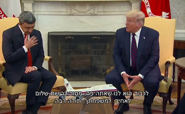 ראש הממשלה נתניהו הודה לנשיא טראמפ והשיב: "אמרתי לך שיש לך את את המפתח ללבבות של האנשים בישראל. בתשובה לשאלת חדשות 12, ענה הנשיא טראמפ: :מה שאנחנו מקבלים, מה שישראל מקבלת יותר מהכול זה שלום, כפי שאתם יודעים, האמירויות היא אומה בעלת עוצמה באזור, והמנהיג שלהם הוא מנהיג גדול. היה חשוב מאוד שהם יהיו הראשונים והקשרים מצוינים.