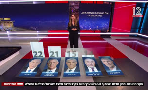 סקר המנדטים של חדשות 12 שפורסם אמש (שני) ב"מהדורה המרכזית", מעלה כי אם הבחירות לכנסת היו מתקיימות היום ומפת המפלגות הייתה נשארת כפי שהיא, המפלגה הגדולה ביותר הייתה הליכוד בראשות בנימין נתניהו שזוכה ל-22 מנדטים. המפלגה השנייה בגודלה היא המחנה הממלכתי בראשות בני גנץ שנחלשת במנדט אחד לעומת סקר קודם וזוכה ל-21 מנדטים. עוד עולה מהסקר כי לו הבחירות היו מתקיימות היום, מתנגדי נתניהו יכלו להקים ממשלה ללא רע"ם.