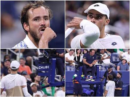שופט המשחק החליט כפועל יוצא להעניק לבונזי הגשה ראשונה נוספת, שוב כאמור, במה שהייתה נקודת המשחק שלו. בעקבות ההחלטה הזו של השופט, מדבדב זעם וצרח: "אתה אדם בוגר בכלל? אתה רוצה ללכת הביתה? אתה מת ללכת הביתה, נכון? הוא לא רוצה להיות כאן, הוא מקבל שכר לפי משחק לא לפי שעה".
